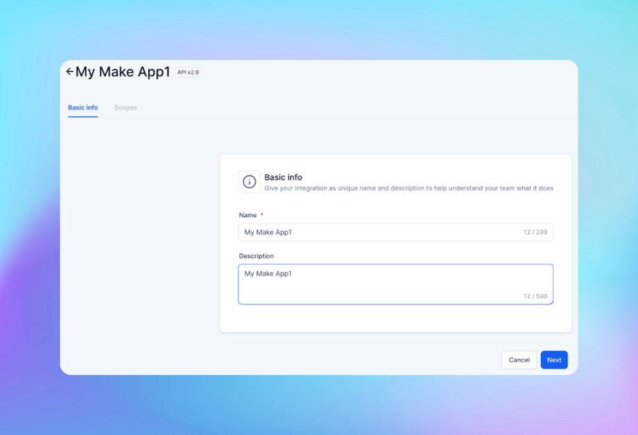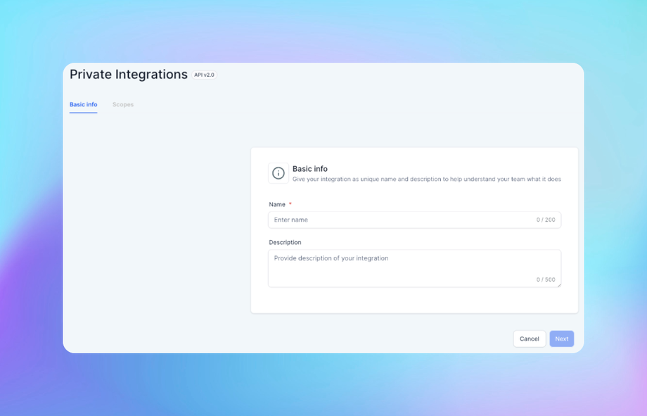 Step 2: Give your Private Integration a name and description to help you and your team identify what it's for.