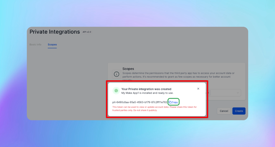 Step 4: Copy the token generated and share it with your third-party app developer.
