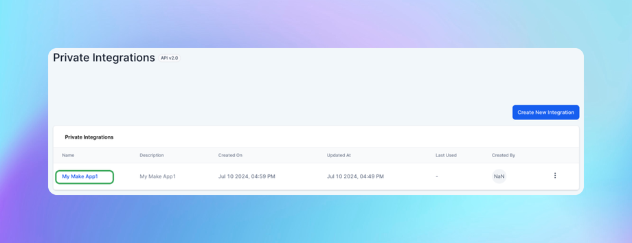 Step 1: Navigate to Private Integrations under settings, and click on the Private Integration you have created.