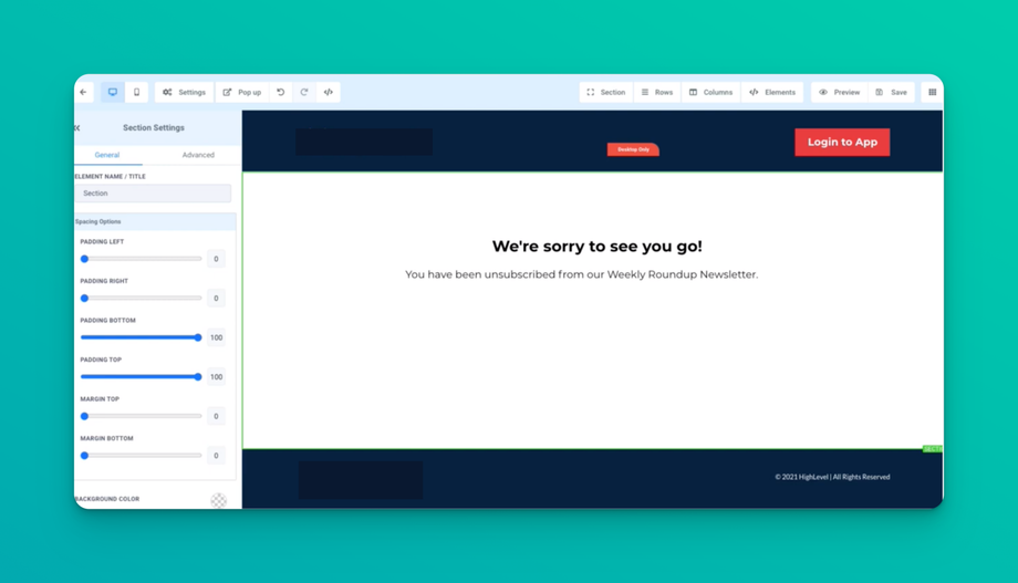 1. Create a landing page with messaging you want people to see when they unsubscribe