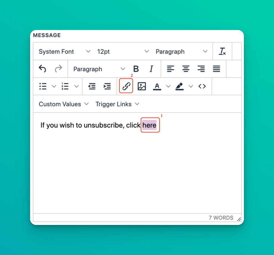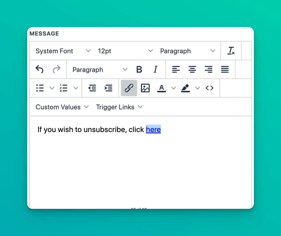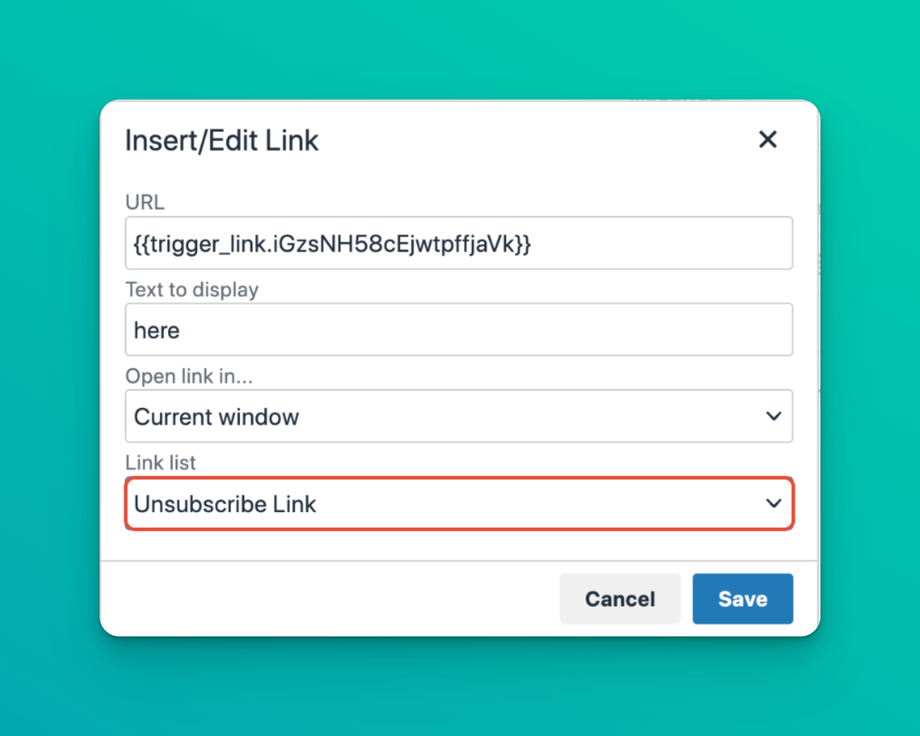 5. Now you can integrate the trigger link as the unsubscribe link in the email footer