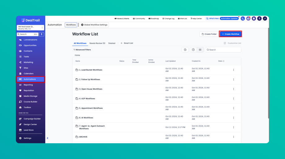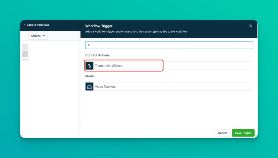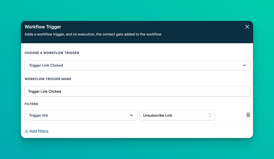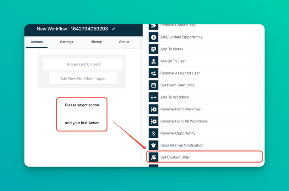 4. Create a workflow that uses "Trigger Link Clicked" as the condition and "Set Contact DND" as the action