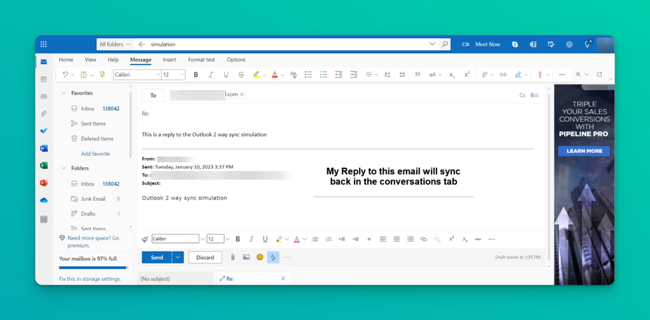 ↔️ Two Way Email Sync for Outlook