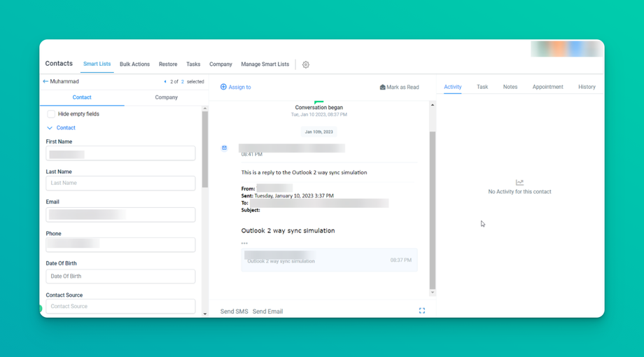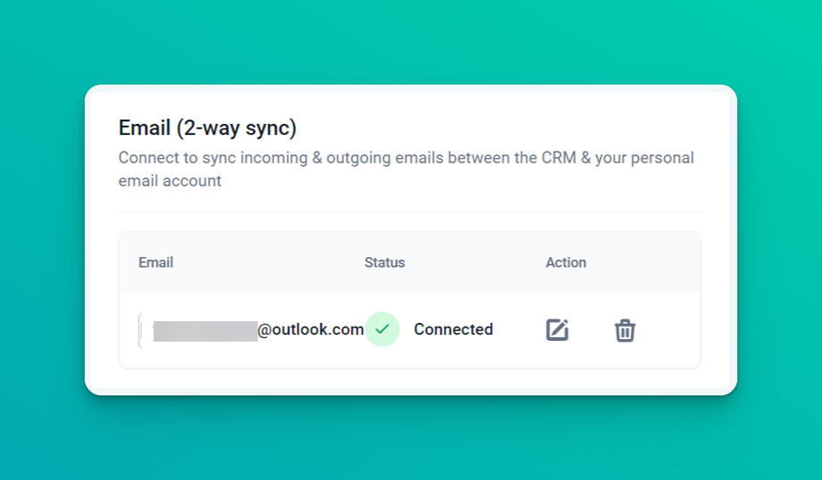 All subsequent messages in the email thread (initiated from the CRM) will be in sync. Outbound emails sent from your email will start reflecting in the CRM and vice versa.