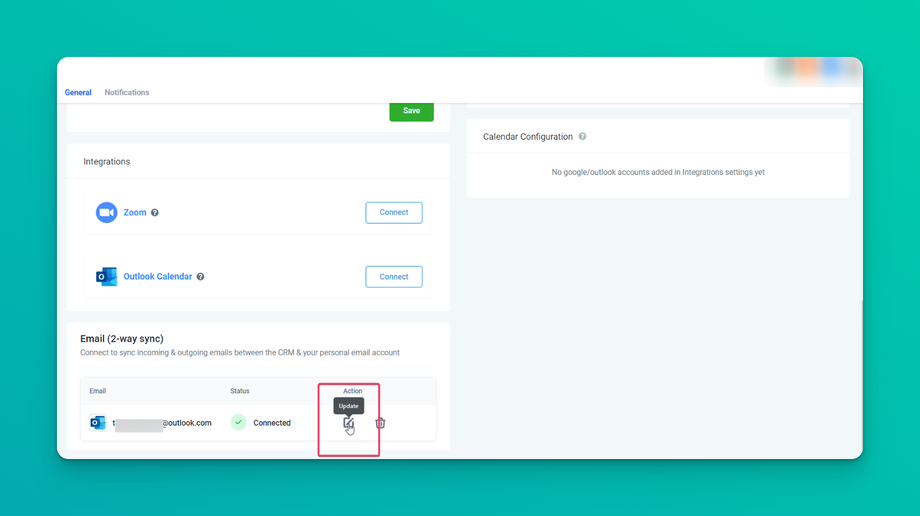 Update Email: This helps users change their connected email ID to another one without disconnecting the previous connection.