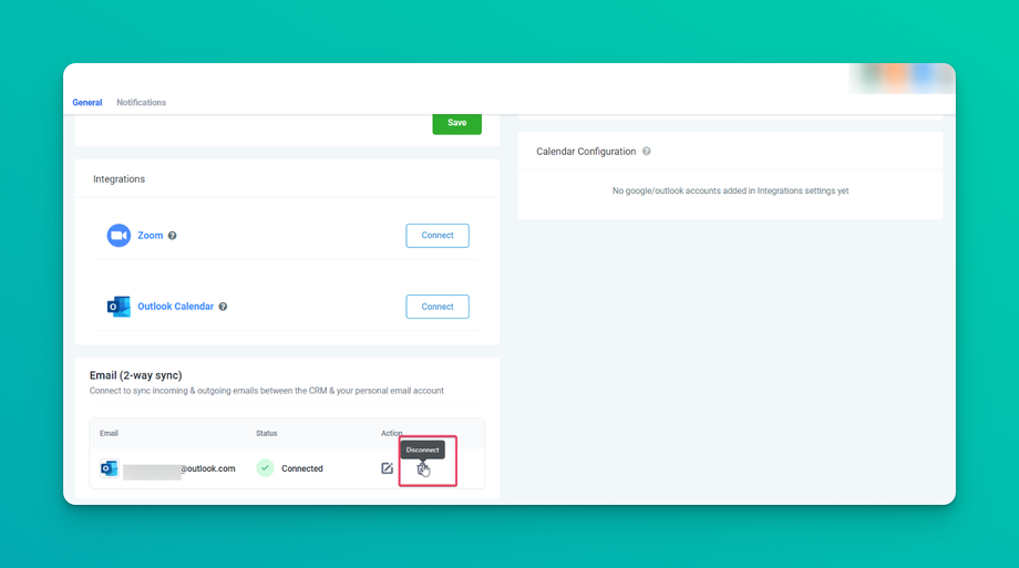Disconnect Email: This will disconnect their connection and stop the sync with the CRM. Once disconnected, emails or messages will not sync between both platforms.
