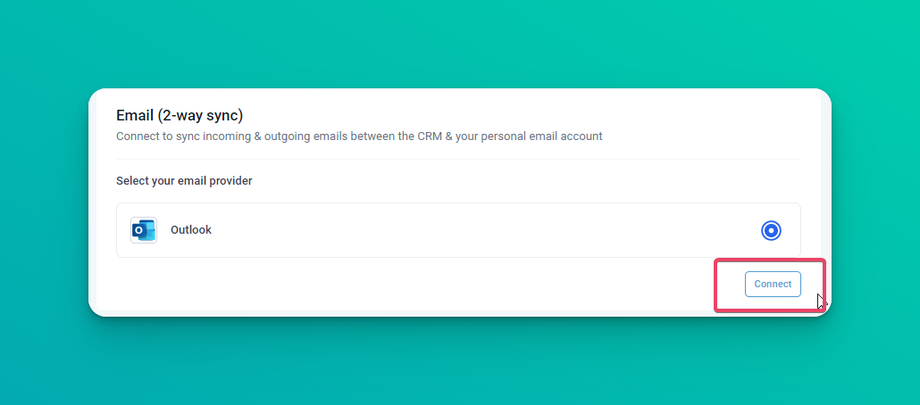 Select Outlook, your email provider & click on Connect.