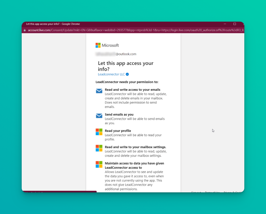 Approve for permissions requested for LeadConnector:
