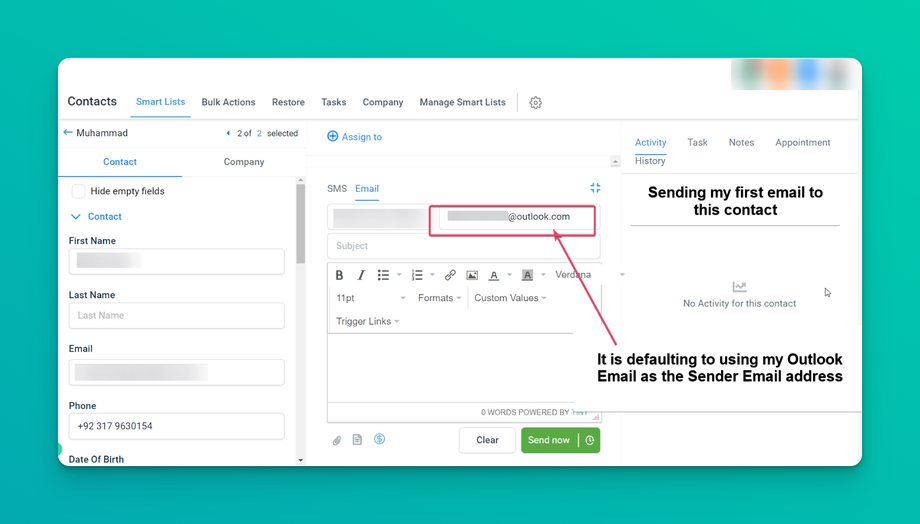 Bulk Email: If the user enters their email ID (after setting up the two-way sync) under the “From Field,” the user email ID will be considered the sender domain for the bulk emails. If the field is blank, the sub-account level provider will be considered the sender domain.
