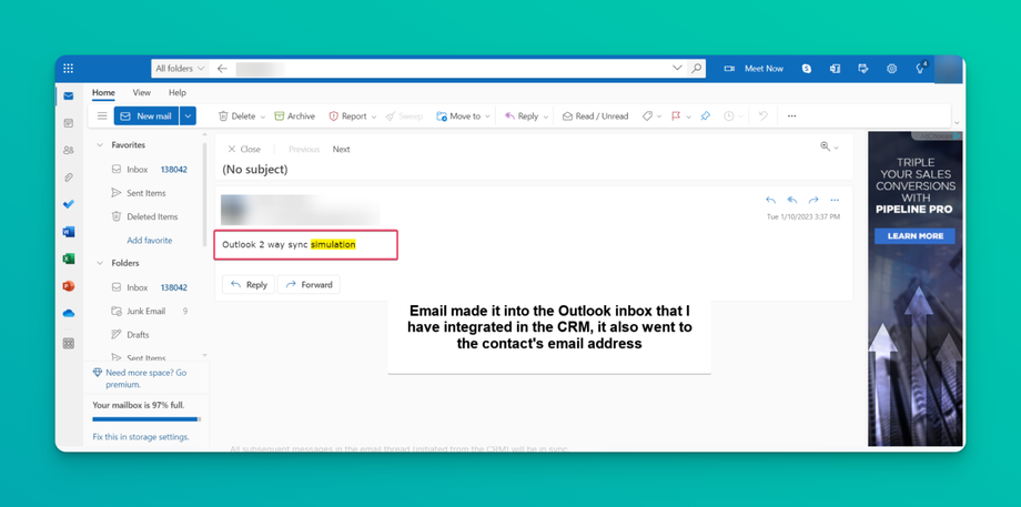 - If you receive a new email in your inbox (Outlook) from an existing contact in the CRM, the email will automatically sync into the CRM along with the subsequent messages in the thread.