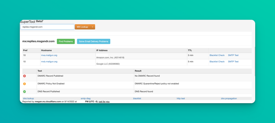 2. Go to Mxtoolbox to look up the MX record for the subdomain/domain you copied