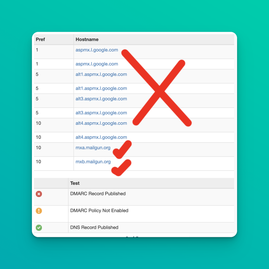 - To see if two records point to mxa.mailgun.org and mxb.mailgun.org.