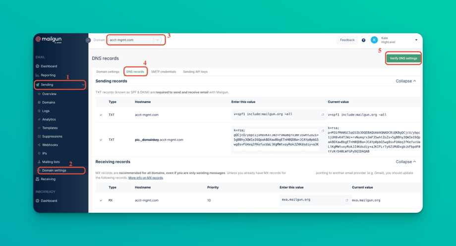 - If they are missing, We must add mxa.mailgun.org and mxb.mailgun.org and set priority 10 for both MX records.