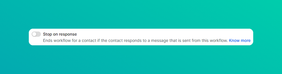 This feature allows a workflow to be interrupted and end for contact as soon as they respond to a message sent from the workflow. This setting is handy when further progression in the workflow depends on the recipient's response or when you don't want to overwhelm your contact with further messages after they have replied.handy additional