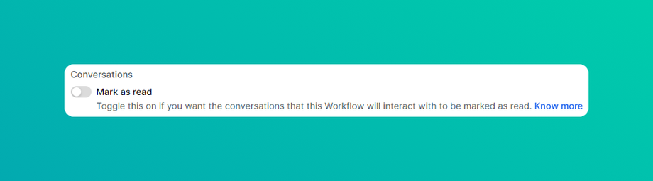 Usage Case 3: If you're using a workflow to send periodic reminders or updates, such as payment reminders or product updates, enabling 'Mark as Read' means these outgoing automated messages will not clutter your conversation tab with unread messages.