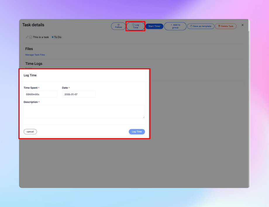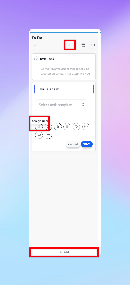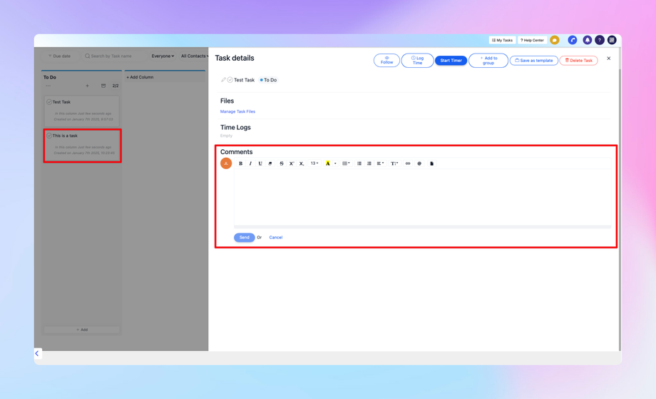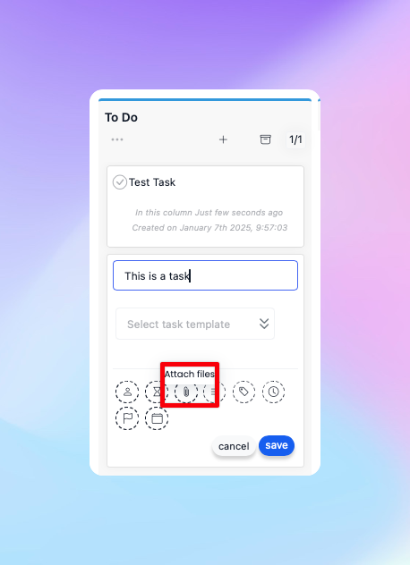 • Attach files (documents, images, etc.) to the task for reference or collaboration.