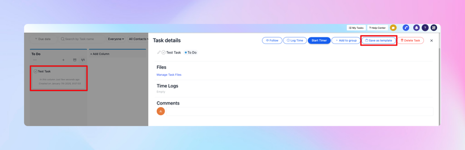 • Save a task as a template for future use. This allows you to replicate task structures quickly.
