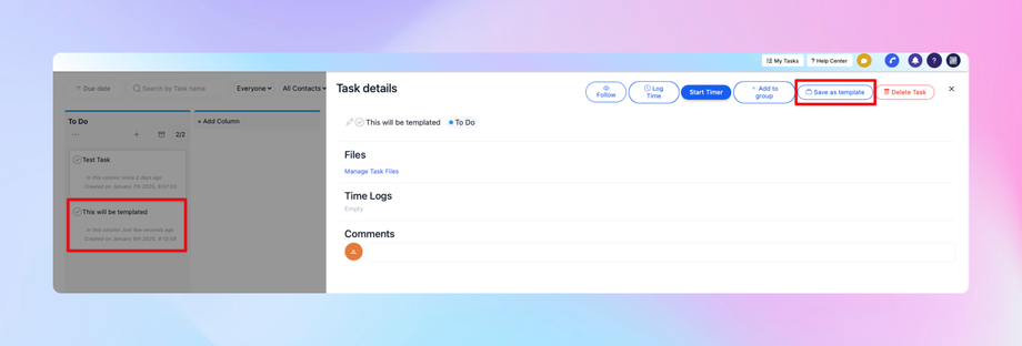 4. Use the saved template to replicate the task in the same or different projects whenever required.