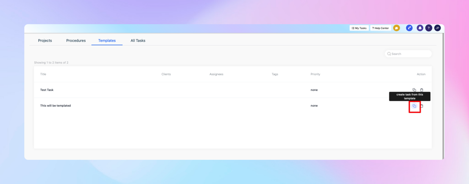 • Click to create a new task and give it a descriptive name (e.g., “This will be templated”).