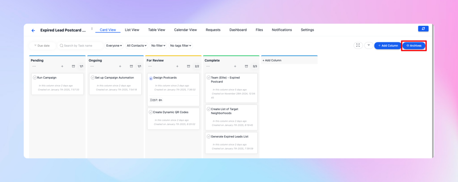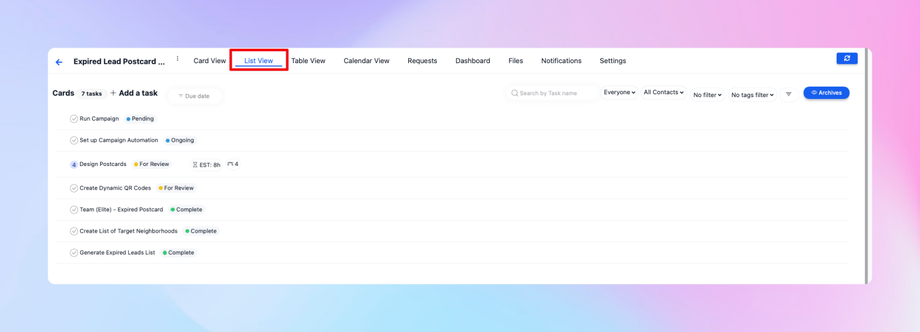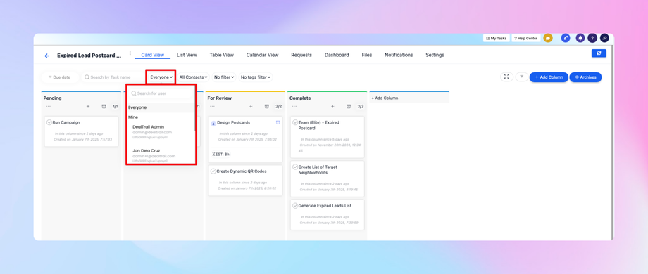 • Filter by Assignee: You can filter tasks by assignees (e.g., Everyone or Mine).