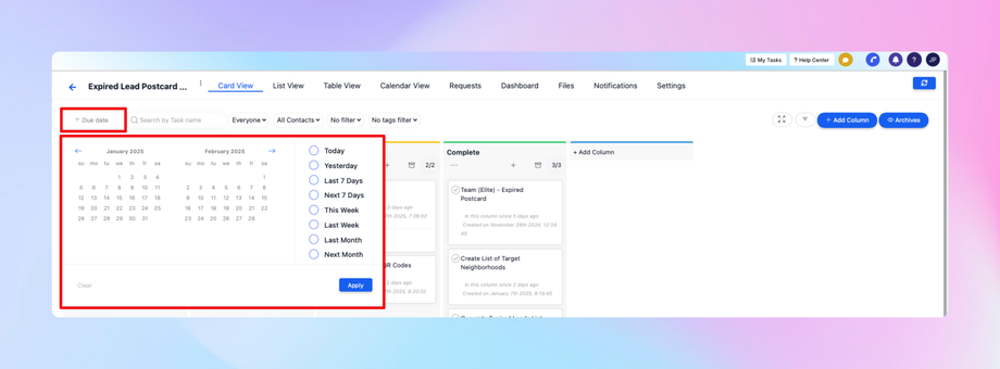 • Filter by Due Date: Narrow down tasks based on their due dates.