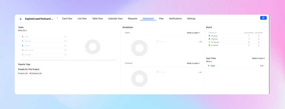 The DealTrail Task System dashboard provides various functionalities to manage and analyze your tasks efficiently.