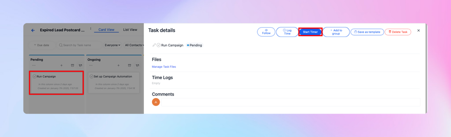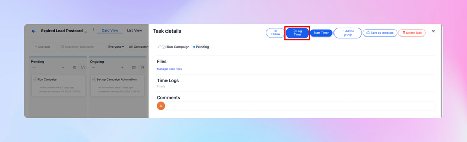 🕙 Timer, Log Time, Time Statistics, and Dashboard in the Task System